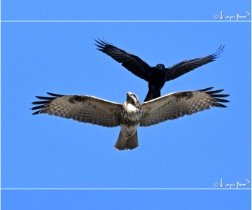 カラスのちょっかいもなんのその、悠然と飛ぶ多摩川のノスリ ノスリ 008