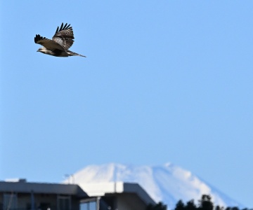 富士山を背景に、多摩川上空を飛ぶノスリ ノスリ 009